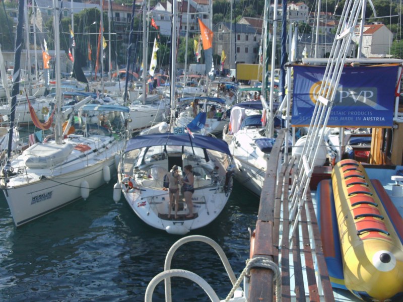 es gehört schon eine große portion professionalität von seiten der veranstalter und der skipper, das hafenbecken von sucuraj/hvar, innerhalb einer stunde mit 40booterln a 50 fusserln zu füllen.