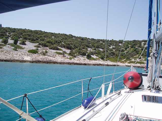 am nächsten tag, da das wetter bereits unerträglich heiß war, wollten wir eigentlich nur noch baden. aus dem ankern wurde leider nichts, weil der schalter der ankerwinsch kaputt ging. wir fuhren nach prvic und reparierten dort den schalter - unsere ankerwinsch war darauf hin wieder einsatzbereit.