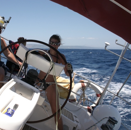 Die Yacht war wieder die Delphia 40, die sich richtig getrimmt auch von mir (halbe Portion) bei Wind und Wellen gut steuern ließ!
