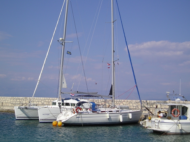 Donnerstag: wie erwähnt - vorm Kassieren ausgelaufen - Kurs Richtung Preko. Herrlicher Meastral - vor Preko noch einige Meilen abgesegelt. Am Abend in Preko in der neuen Marina angelegt. Die hatte noch nicht offen, jedoch die Liegeplätze konnte man schon benutzen. Duschen- vorerst nur kaltes Wasser und WC-Anlagen waren im Betrieb, jedoch noch kein Strom am Liegeplatz. Marina sollte in einem Monat aufsperren. Dafür sind wir wieder gratis gelegen. Essen in Preko in einem guten Lokal direkt an der Strandpromenade - sehr gut und preiswert - v.a. freundlich!!!!!!!!