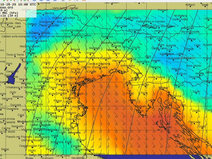 Anbei findet ihr Wetterkarten von dem gestrigen Unwetter ca. 22:00. Bisher hatte ich noch nie eine derartig hohe Windgeschwindikeit in der Nordadria auf irgend einer Wetterkarte gesehen.