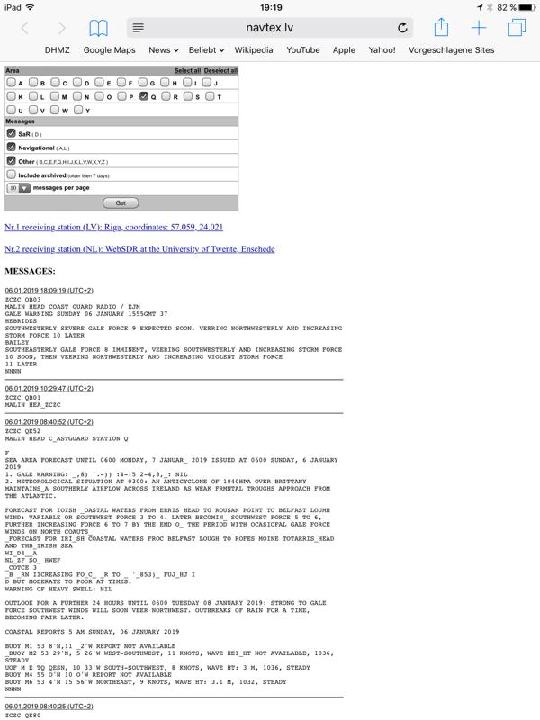 Habe mit den unten stehenden Link einige Navtexmeldungen der vergangen Tagen abgerufen, scheint wider zu funktionieren, denn einige Zeit lang ging da gar nichts.