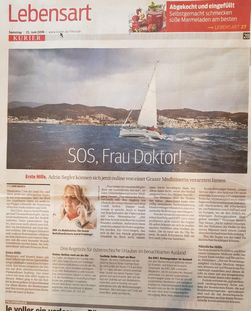 Erste Hilfe, Adria Segler können sich jetzt online von einer Grazer Medizinerin verarzten lassen. In Verbindung mit "SeaHelp"