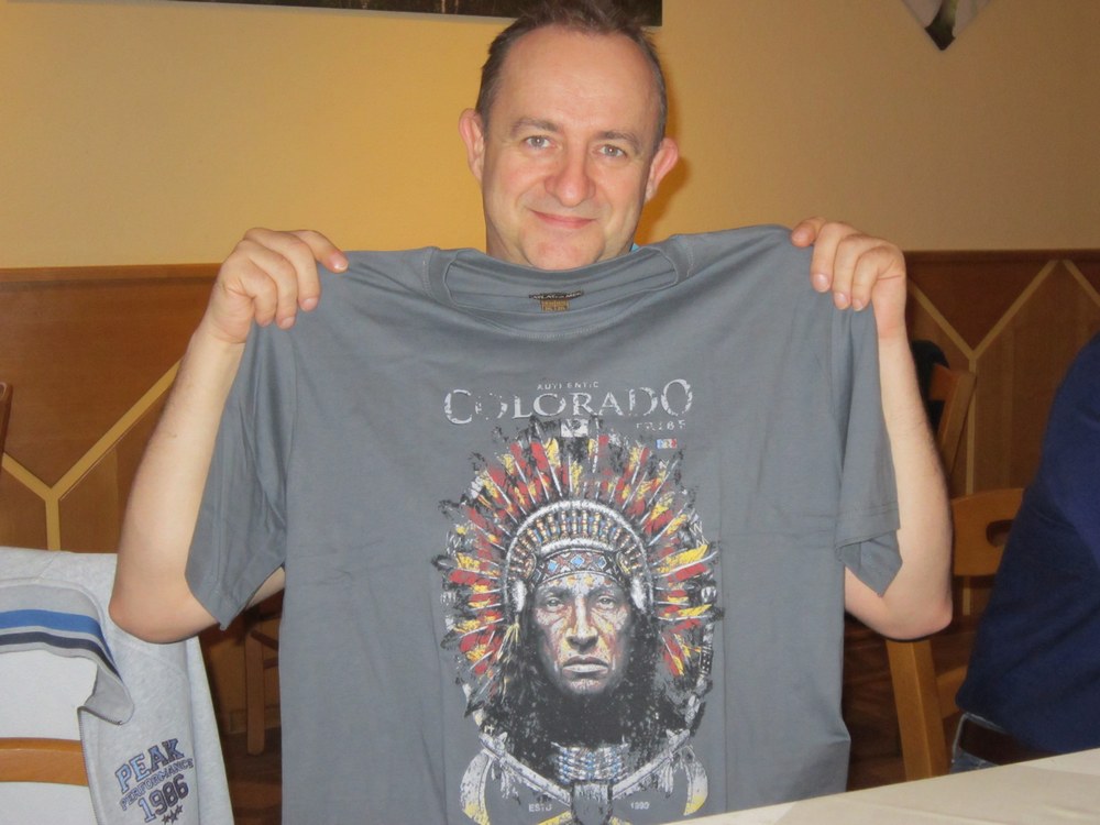 Andy bekommt ein T-Shirt damit man ihn als Häuptling erkennt.