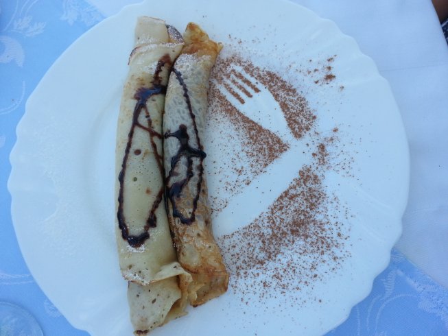 in der mitte siehts wirlich aus wie der schnee eines cappuccino mit kaokao drauf. palatschinke?