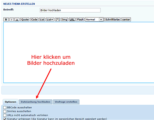 Da ich immer wieder gefragt werde, wie man hier im Forum Bilder hochladen kann, hier die Anleitung:
