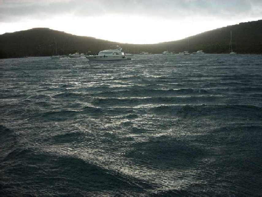 Wie man sieht ist da bei Bora schön was los. War allerdings von der Einfahrt aus gesehen die letzte Boje links.