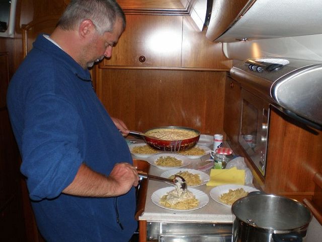 beim sommertörn ankern wir mind. jeden zweiten tag in einer bucht. da wird dann verschiedenes gekocht, aber auch fleisch und fisch gegrillt.