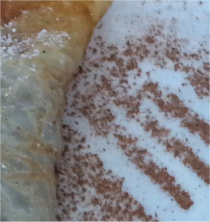 in der mitte siehts wirlich aus wie der schnee eines cappuccino mit kaokao drauf. palatschinke?