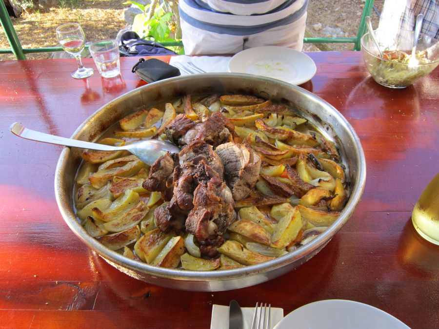 Lammpeka für 4 Personen kostet je Kg 300 mit 2 Beilagen.