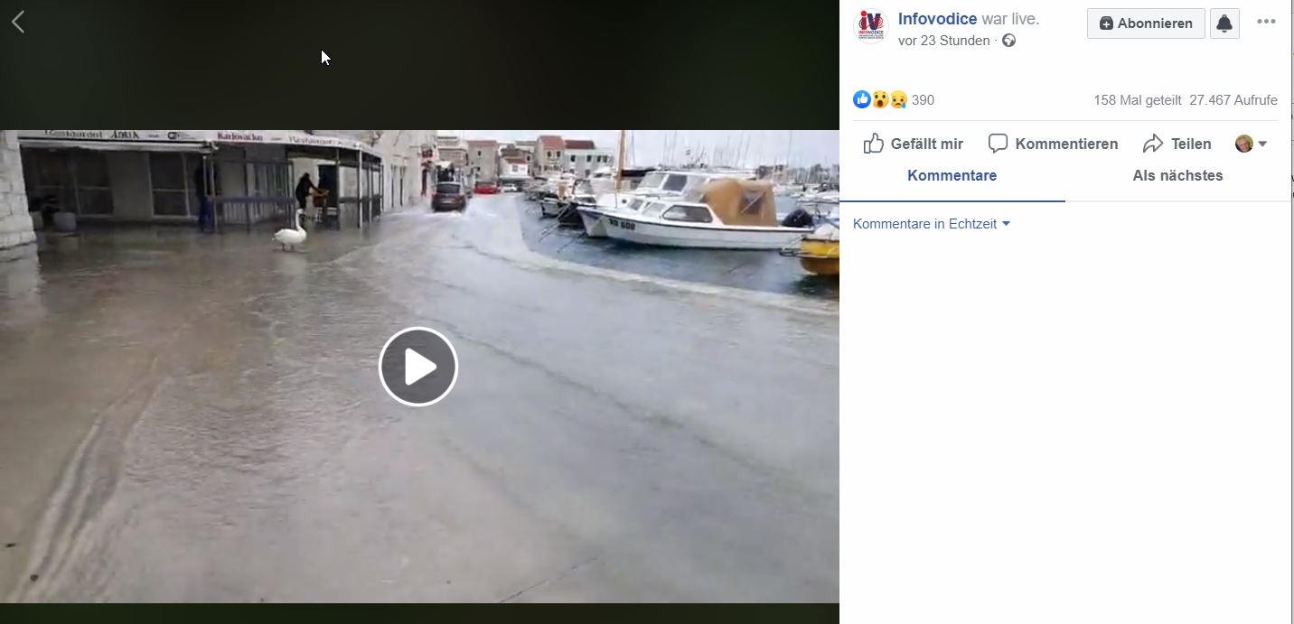 Hochwasser können an der Kroatischen Küste immer wieder auftreten , wir hatten das schon mehrmals in den Sommermonaten gesehen. einmal in Veli Iz da war in kürzester Zeit der ganze Dorfplatz überschwemmt. Da letzte mal in Veruda bei ankommenden Gewitter stieg der Wasserspiegel in kürze um mehr als einen Meter das komplette Restaurant war überflutet.
