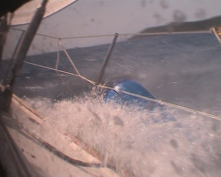 Da hab ich noch ein DV-Cam Snapshot. Das Wasser kam so weit an Bord, dass es einen Fender runterschwemmte.