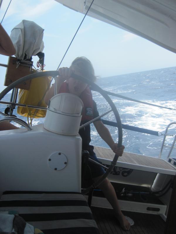 Der Junior macht sich sehr tapfer am Steuer, nach einer halben Stunde geht ihm dann aber die Kraft aus...