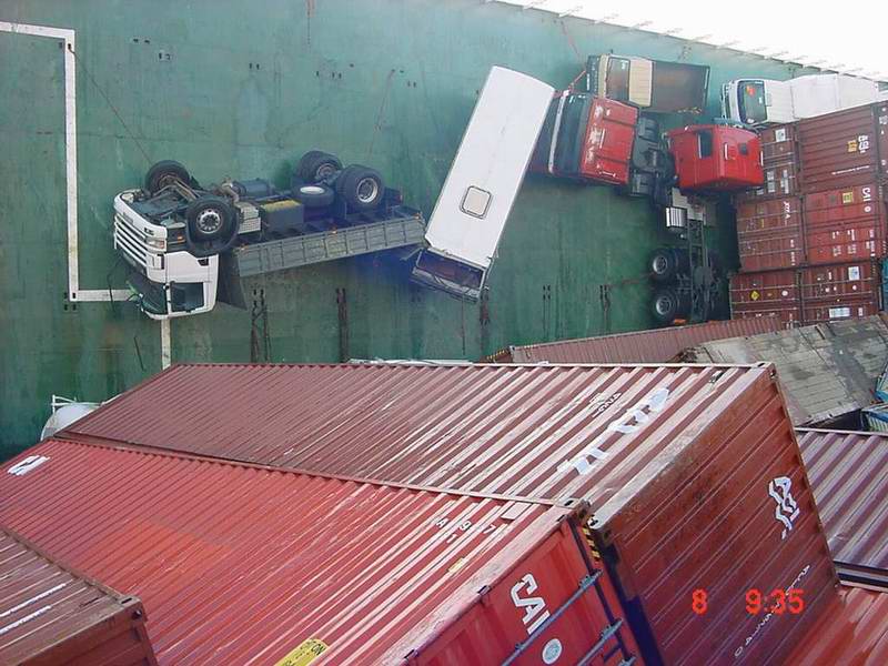 Ja das sind Bilder von einem Erzfrachter vor Durban in Südafrika, der gleiche Sturm hat auch im Hafen einiges angerichtet.