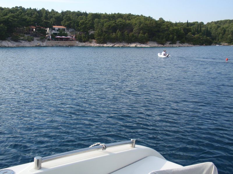 In Korcula ist das ein alter Schmäh von den Marineros, grosse Schiffe ganz hinten rein. Wenn man's drauf hat, ärgern die sich dann wenigstens