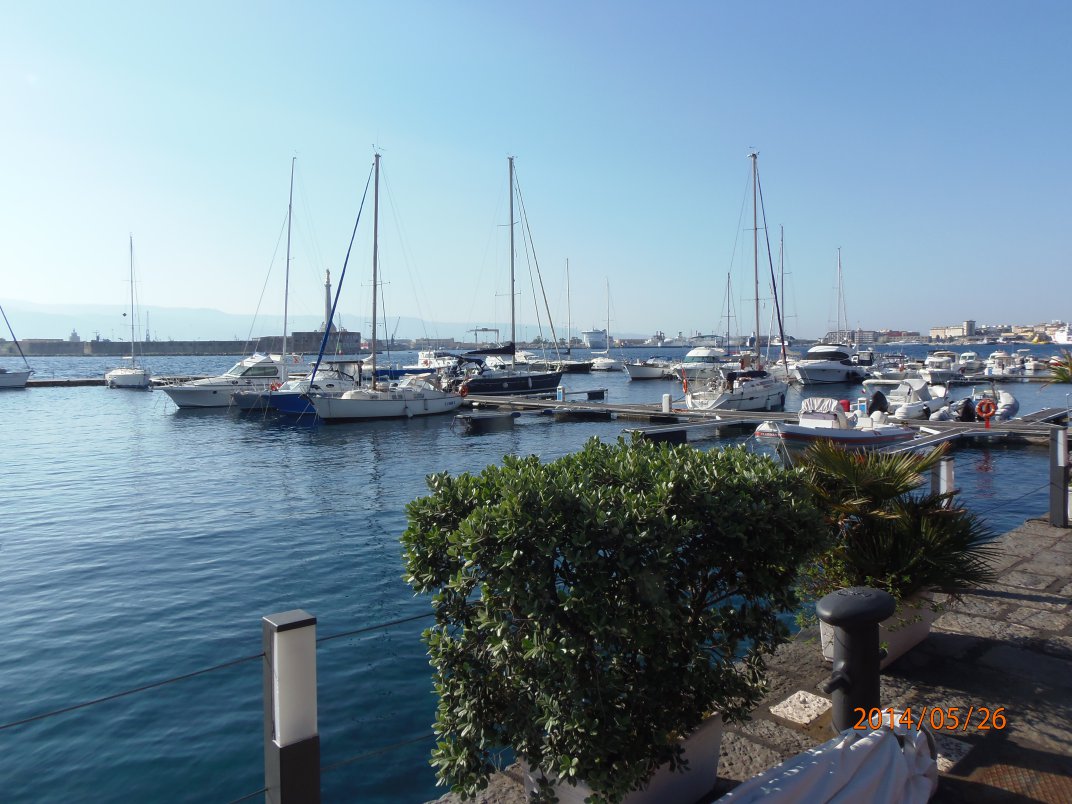 25.05.2014 20:00 Uhr 38°11,9N 015°33,5E wir haben in der Marina von Messina festgemacht. Sehr schöner Hafen mit guter Infrastruktur.