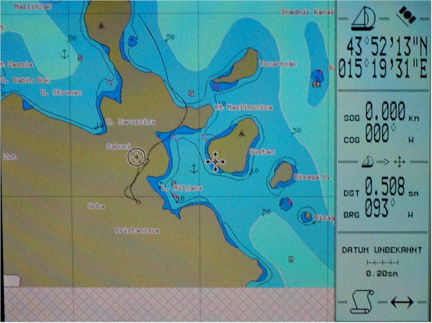 Als Kartendatum habe ich das kroatische Datum eingestellt, jedoch sind immer noch kleine Abweichungen vorhanden, ich schätze einmal aus dem Bauch so ca. 20 - 25m, wenn ich in der Marina Sukosan stehe. Bin heuer auf die Platinum-Karten von Navionics gespannt, die haben einige tolle neue Features. Ein Reserve-GPS (Handgerät mit Batterien) ist immer an Bord.