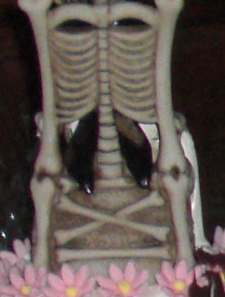 Also ich meine ein Skelett zu sehen, auf dem jemand sitzt. (oder so ähnlich)