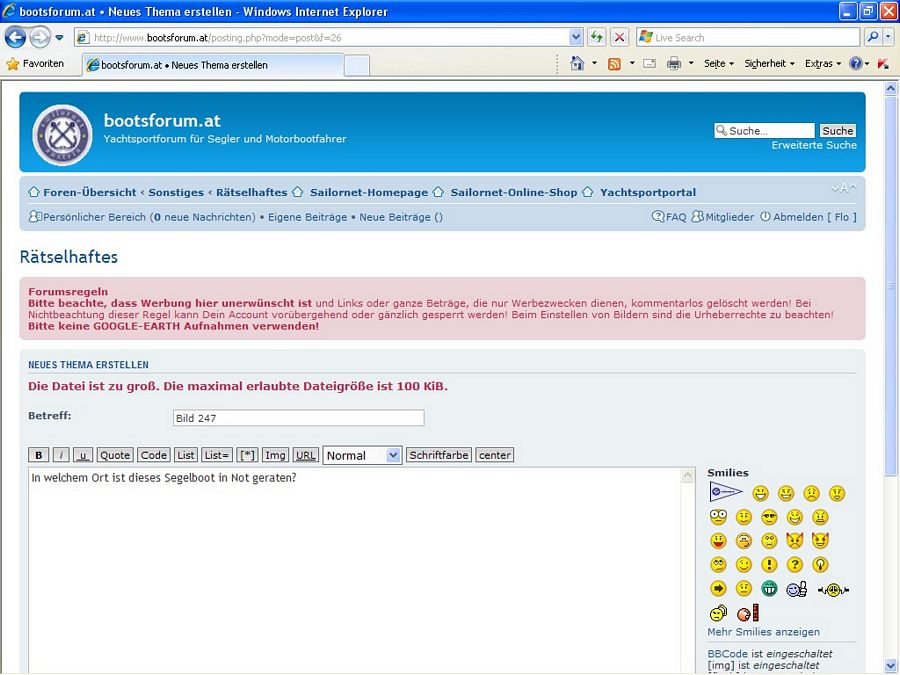 Im Küstentratsch gibts ein Thema " Bilder im Forum", da gehören die letzten beiden Beiträge hin.