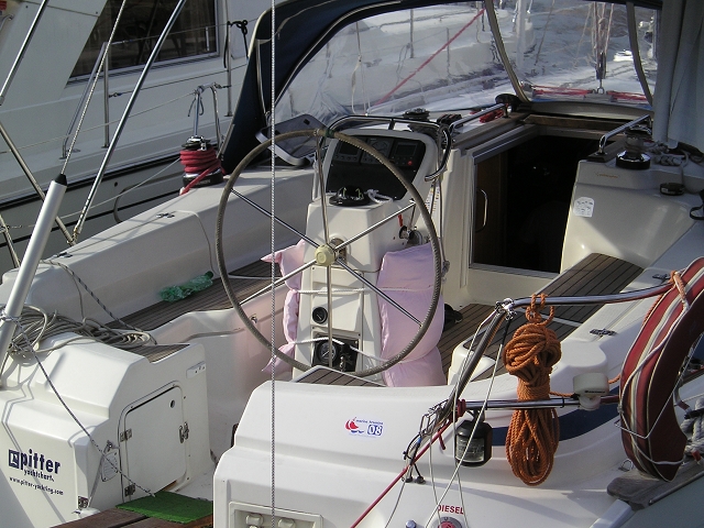 Das Schiff ebenso in Ordnung. Lief wirklich gut. Etwas luvgiereig - ab ca. 16 Knoten Winde mußte man vom Groß was wegnehmen. Auf der Raumen etwas instabil - v.a. im Autopiloten. Ansonsten war die "Marlen" in hervorragendem Zustand. Gechartert bei Hans Buchinger.
