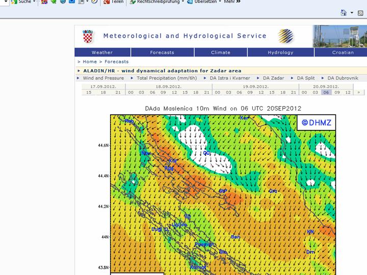 Schlimm für diejenigen die derzeit in Kroatien unterwegs sind denn diese Front wandert über die ganze Küste.