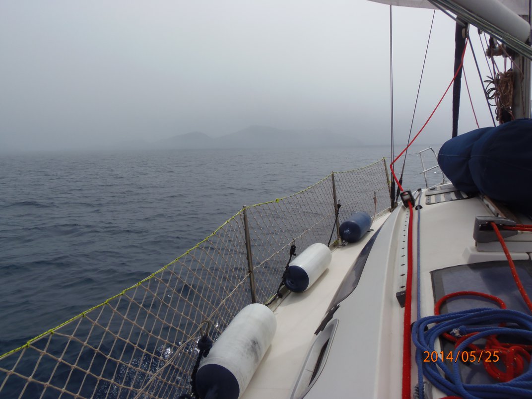 Den ganzen Tag motoren wir durch einzelne Nebelbänke, manche extrem dicht. (Sicht um 100 Meter) Unangenehm, da Nebel ja auch Geräusche