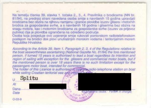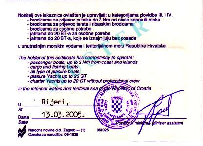 Information für Besitzer des kroatischen Küstenpatents der Kategorie B (ab Anfang 2005) bzw. des alten "Boat Leaders Licence" (seit ca. 1997 bis Anfang 2005):