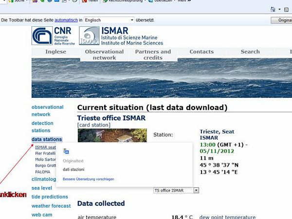 Wann immer wir von unserer Marina aus in Norditalien Segeln gehen oder abreisen, sehen wir uns die Wetterbericht unter anderen auch diese Wetterstation